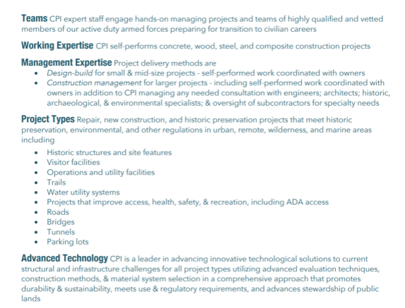 construction projects/military veteran engagement