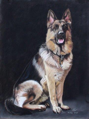 Exter is a notable Police Composite Artist, but that's not all. You don't become a police artist without the ability to create portraits. The portrait above was so convincing that Fritz (German Shepard subject) actually had to sniff the portrait. It was a need to help society that drove Exter to offer his services to the Sacramento Sheriff's Department which launched his career in cognitive police art. Exter has the ability to interview witnesses and present them with yes or no choices which eventually through the process of elimination will create a close likeness, close enough for effective public collaboration in identification.